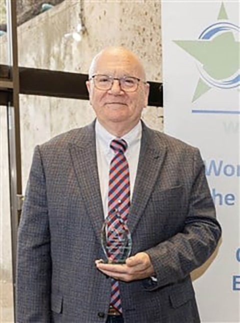 Rev. Brian Wharton com o Prêmio Valor de 2025, concedido pelo TCADP. Foto cortesia do TCADP/Red Owl Studio.